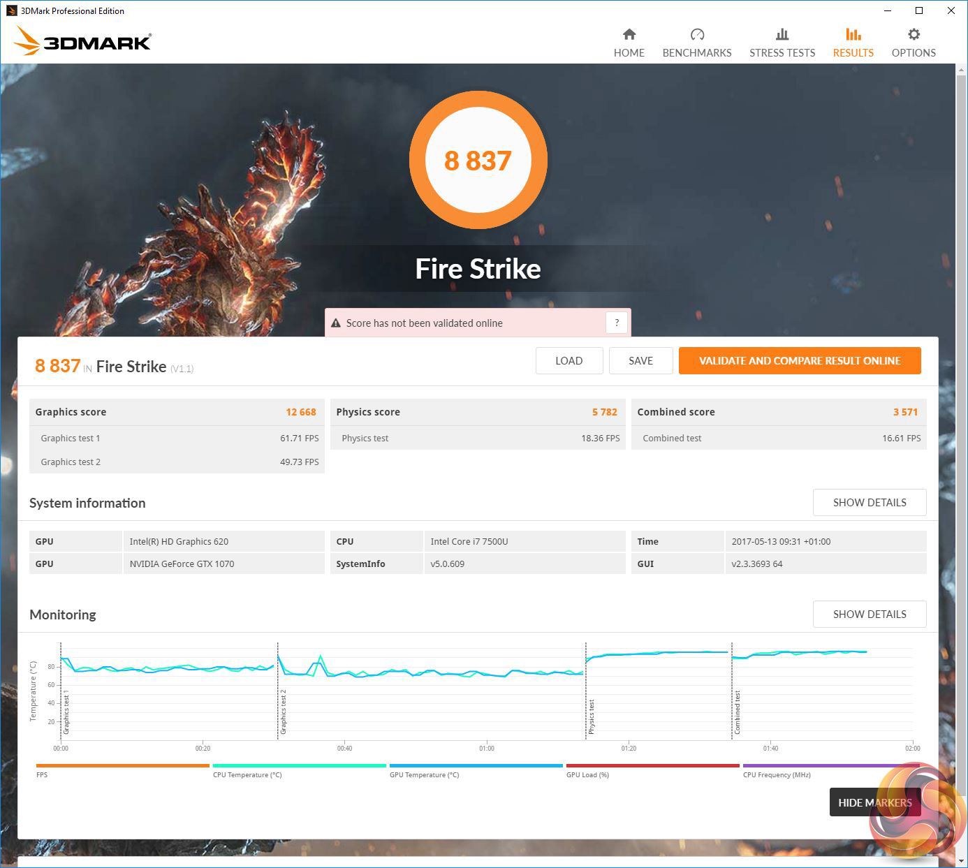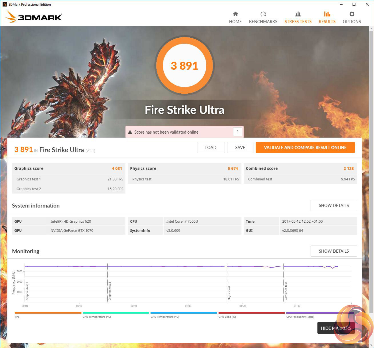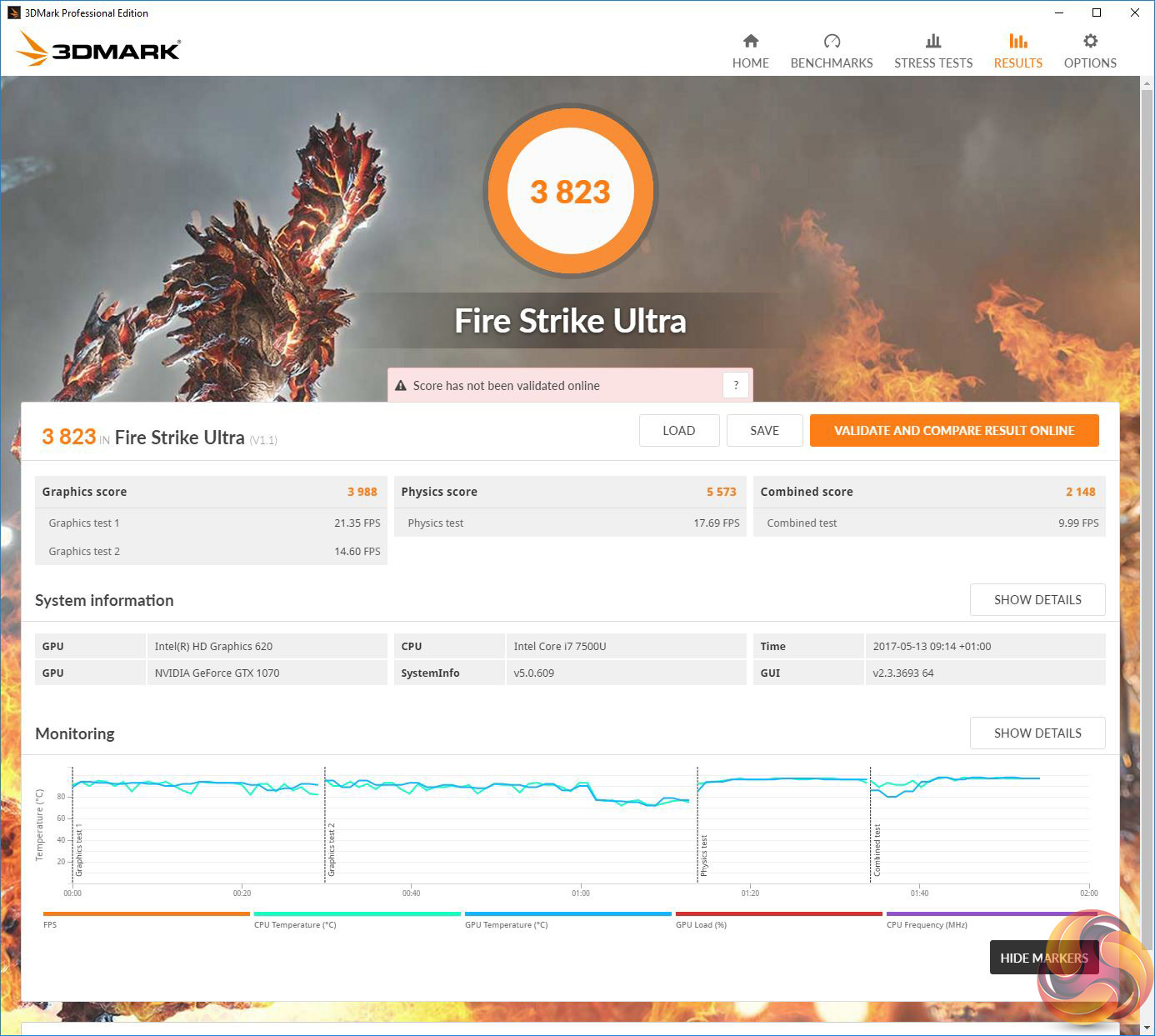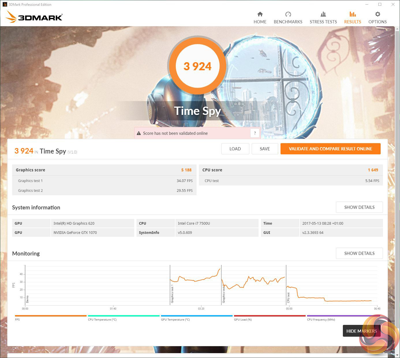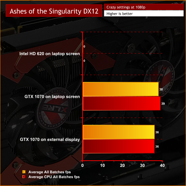 We did two sets of test runs with the Core and a PNY GTX 1070 graphics card. The first set was outputting to the laptop display at 1080p while the second used an external display, also at 1080p, connected via DisplayPort. The two sets of figures were essentially identical, which was interesting as we had seen a significant difference when we tested the Razer Blade with Core and GTX 1080.