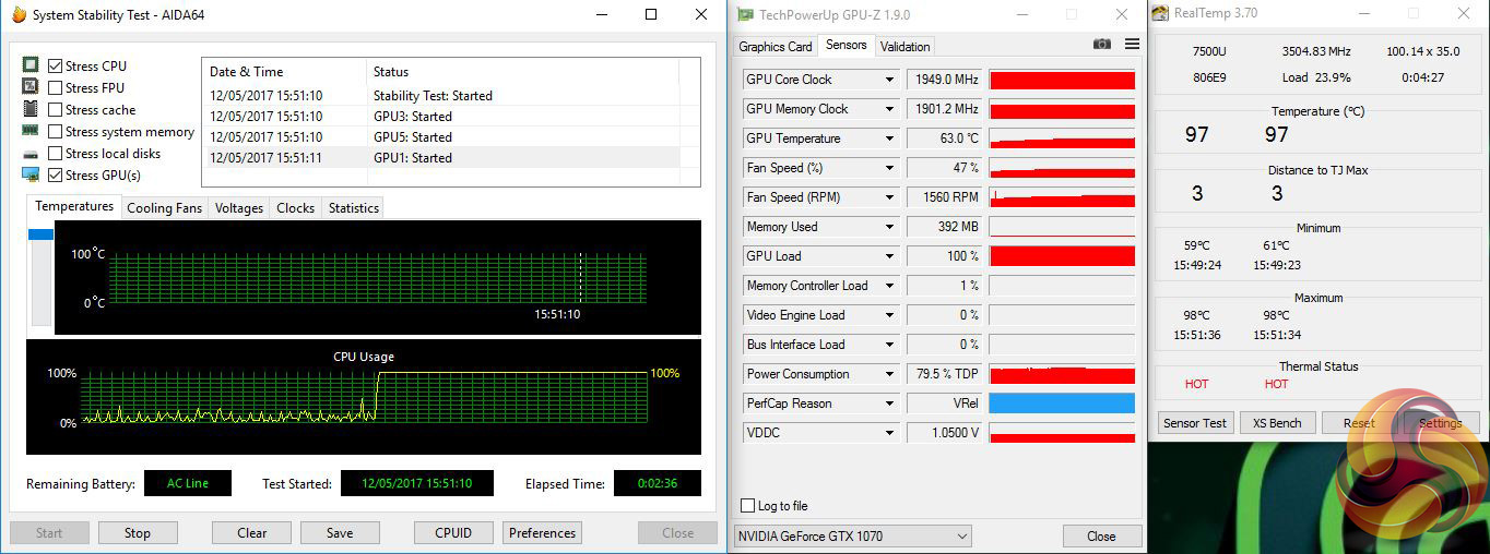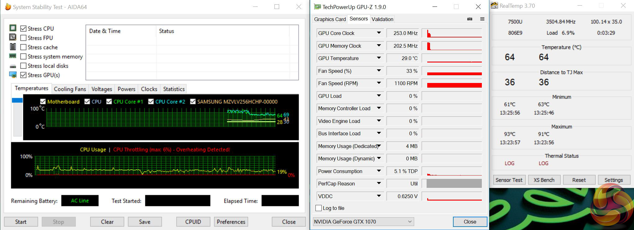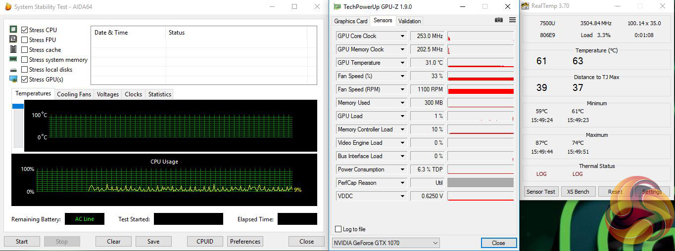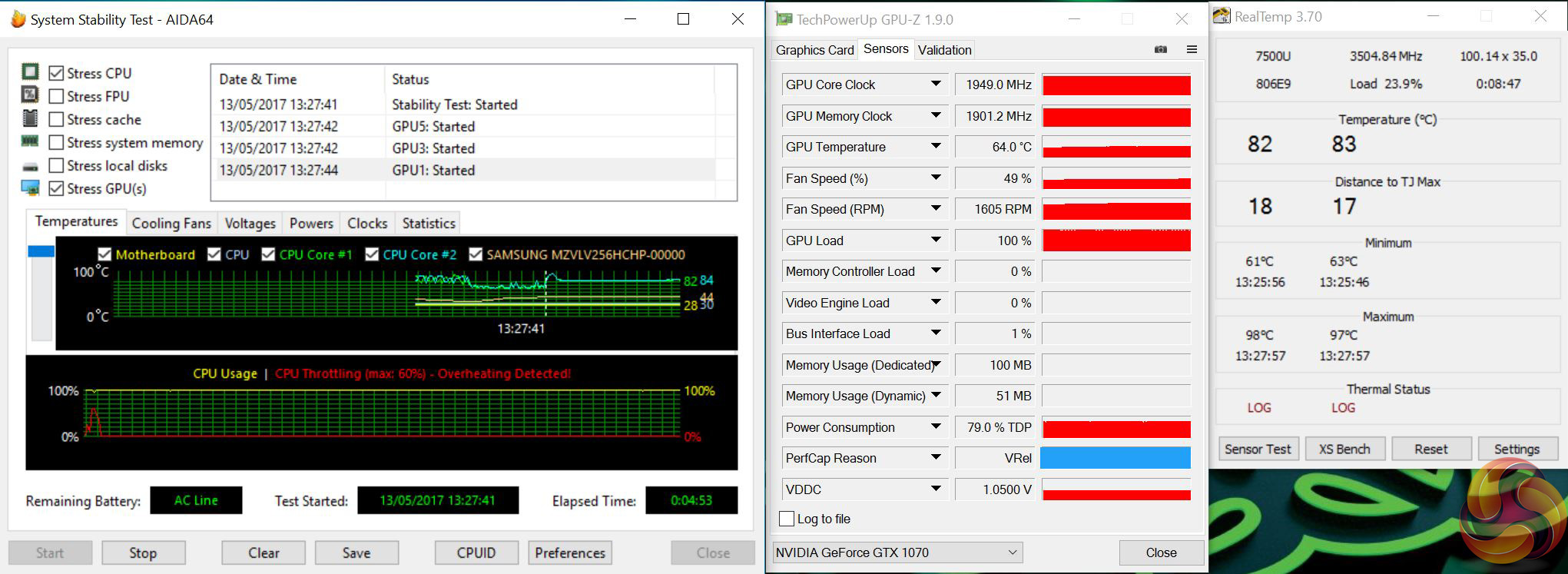 The CPU runs hot inside Razer Stealth. It was interesting to see that it ran hottest when we connected the Core to an external display, almost as though the CPU was running to the absolute max, attempting to keep up with the massive graphics card. We always expected the dual core Core i7 would struggle to keep up with GTX 1070 but even so, we did not expect it to run this hot.