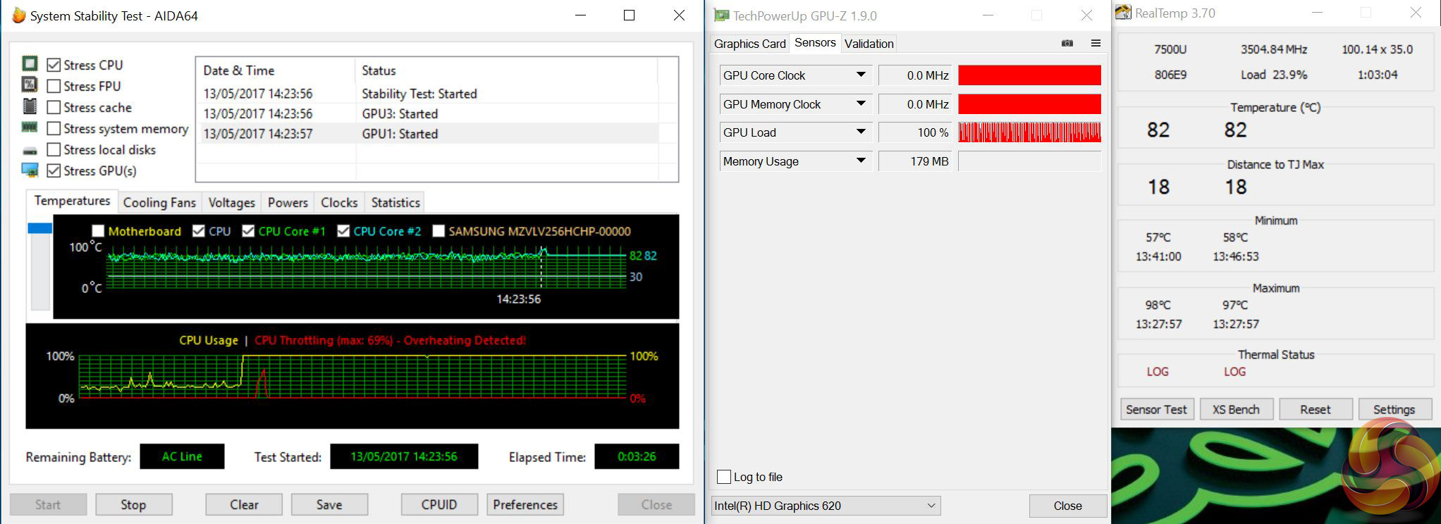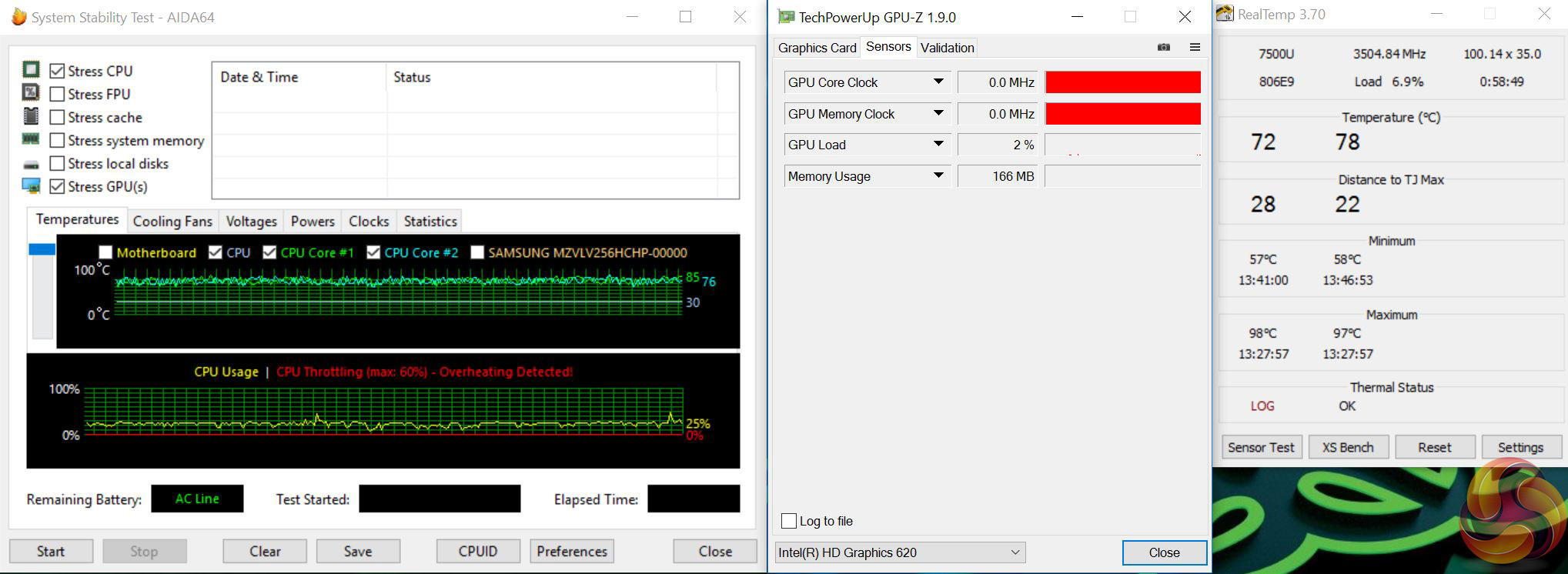 You can hear the Stealth working away however it is not intrusively loud. When you consider the slender nature of the chassis and look at the CPU temperatures the only conclusion you can draw is that it is quiet because the cooler is not working hard enough. While we appreciate a laptop that is lovely and quiet, even under load, it feels as though Razer has gone too far and needs to step up the fan curve.