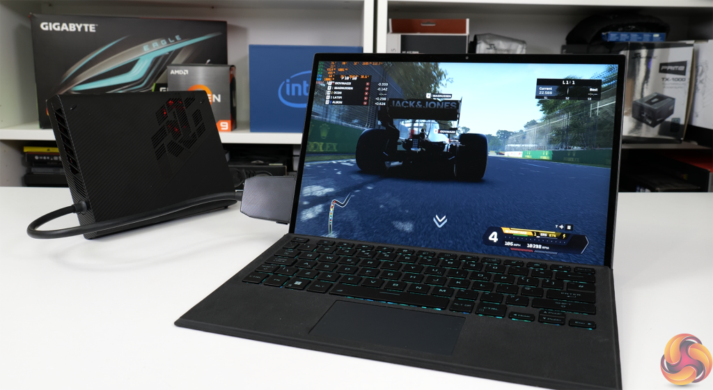 Though there’s definitely notable output from the XG Mobile eGPU when running a gaming load. I guess that’s a solution for gaming with headphones or a few feet away from a big TV.