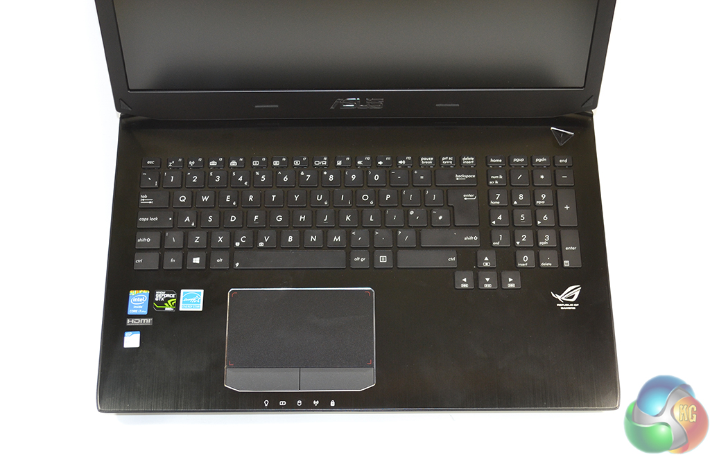 Asus fits a full-sized keyboard onto the ROG G750JZ, which really helps users (such as myself) who regularly switch between laptop and desktop usage. The keys have a good actuation feel to them – one can actuate them with a large force without creating an excess of noise. The keys travel an appropriate distance before reaching the bottom-out point.