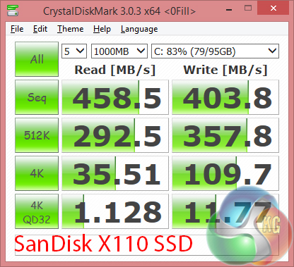 Despite the relatively low transfer rates, it is good to see SanDisk's X110 SSD maintaining its full speed potential whether data is compressible or incompressible. The 4K performance is strong.