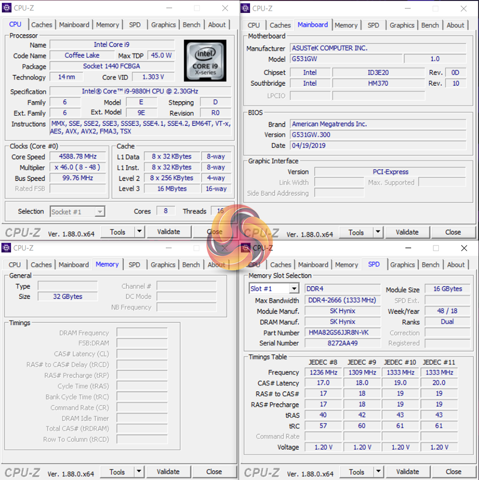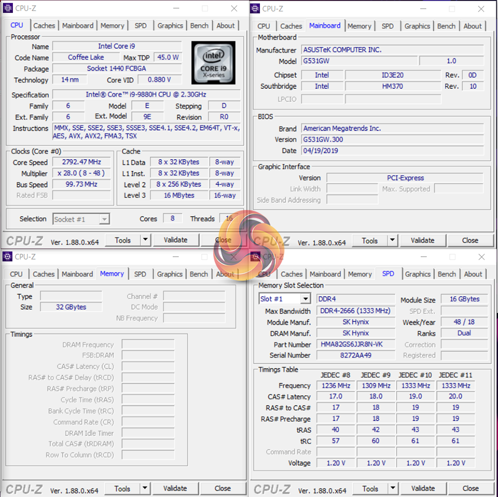 The Core i9-9880H is an eight-core, sixteen-thread Coffee Lake architecture CPU built on Intel’s 14nm++ manufacturing process. The chip clocks in at 2.3GHz on the base frequency, can boost as high as 4.8GHz under the correct conditions, and features 16MB of L3 cache. Despite the CPU’s extra pair of cores versus 8000-series predecessors, TDP is maintained at 45W and could become a challenging factor when trying to avoid power-induced throttling. Whichever way you swing it, the Core i9-9880H is a mobile CPU powerhouse that looks capable of mixing it up with decent desktop chips.