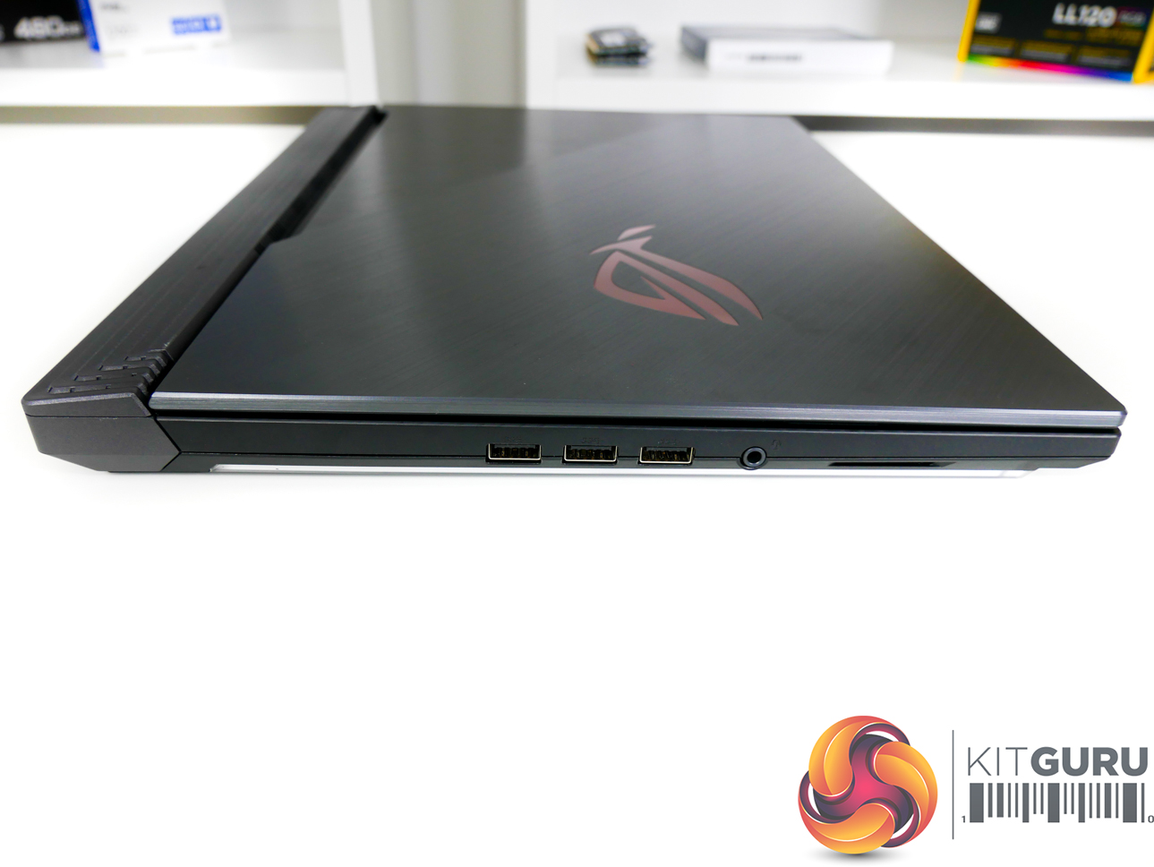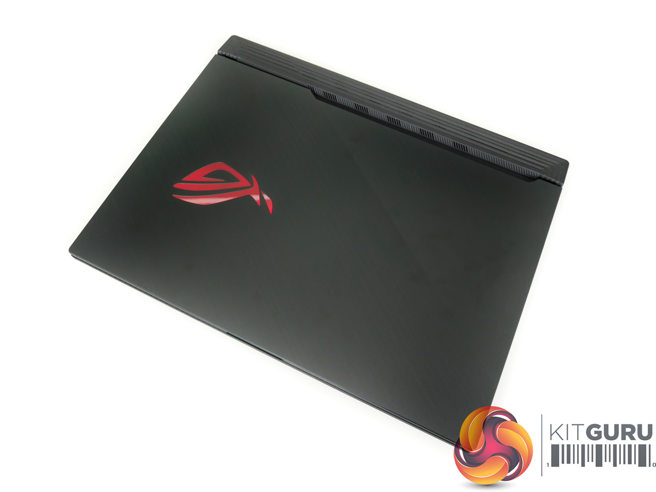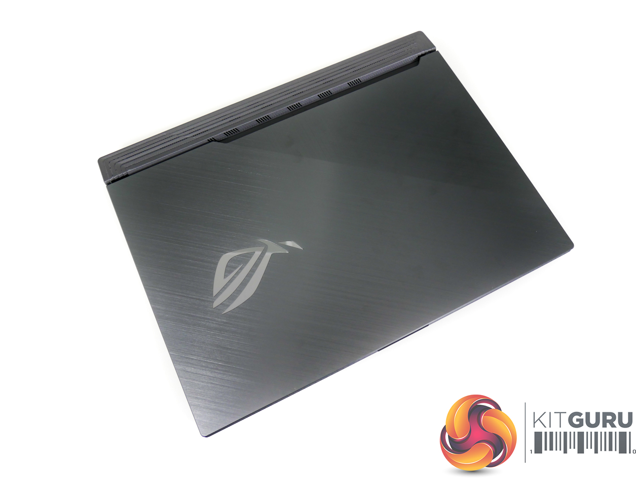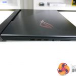 The G531GW measures in at 36cm wide, 27.5cm deep, and 2.6cm thick. Weight is just under 2.4kg, according to ASUS' specifications. Vents at the rear of the chassis extend past the screen hinge, thus limiting the maximum rotation angle slightly.