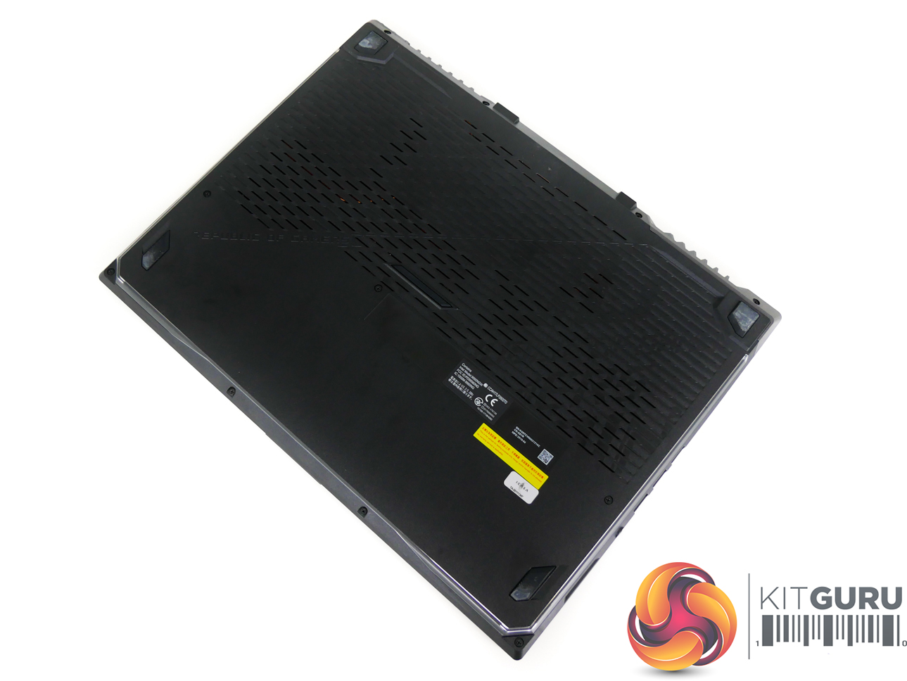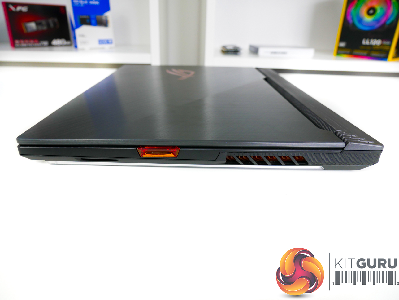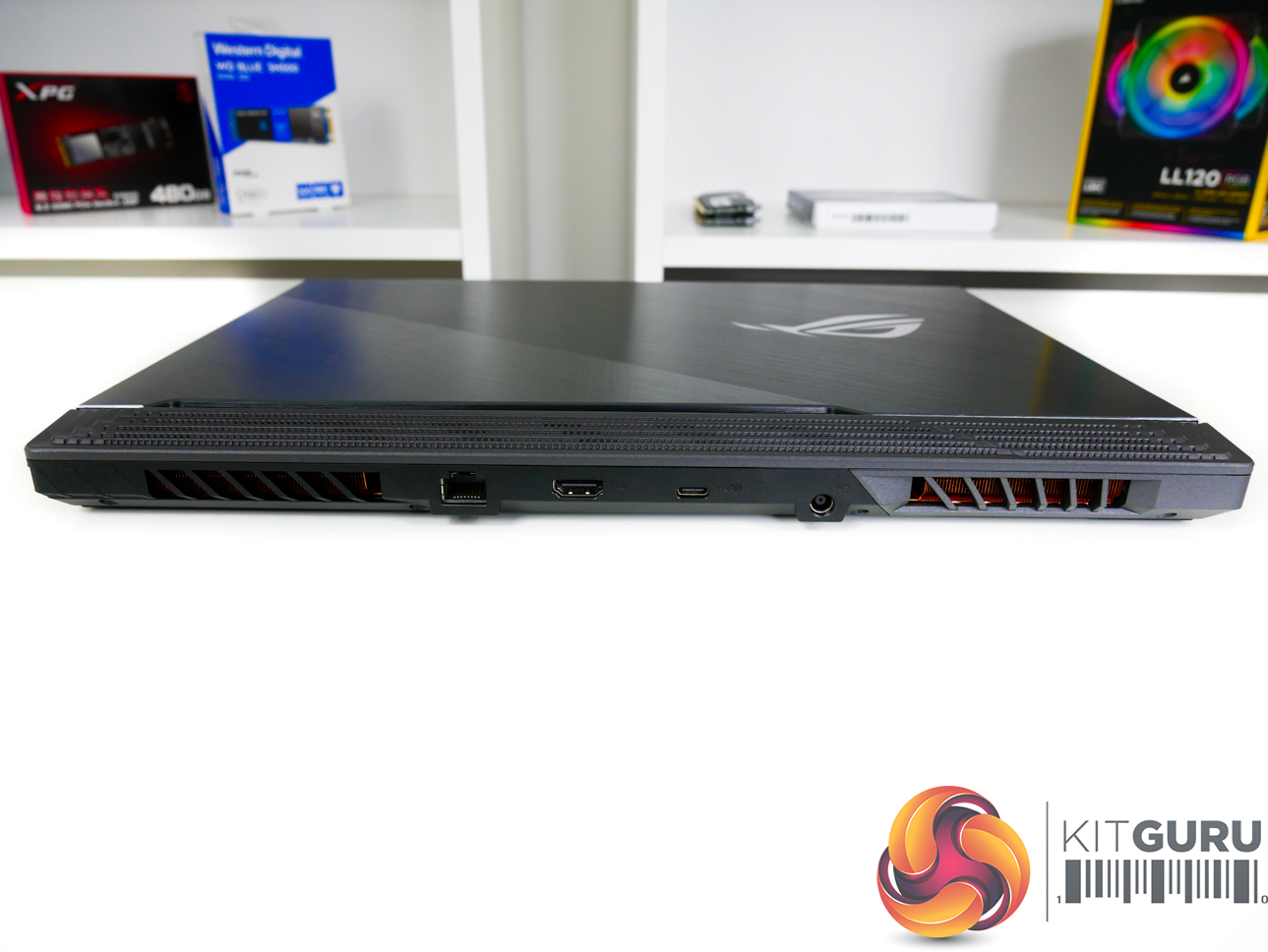 The light-up ROG logo is a nice touch which adds to the premium feel. There is a decent amount of venting on the underside plastic shroud, though most of the air intake and exhaust is handled by back and side vents.