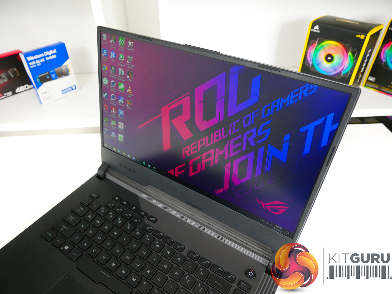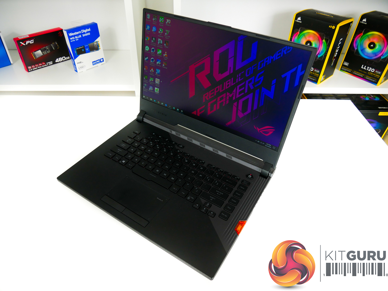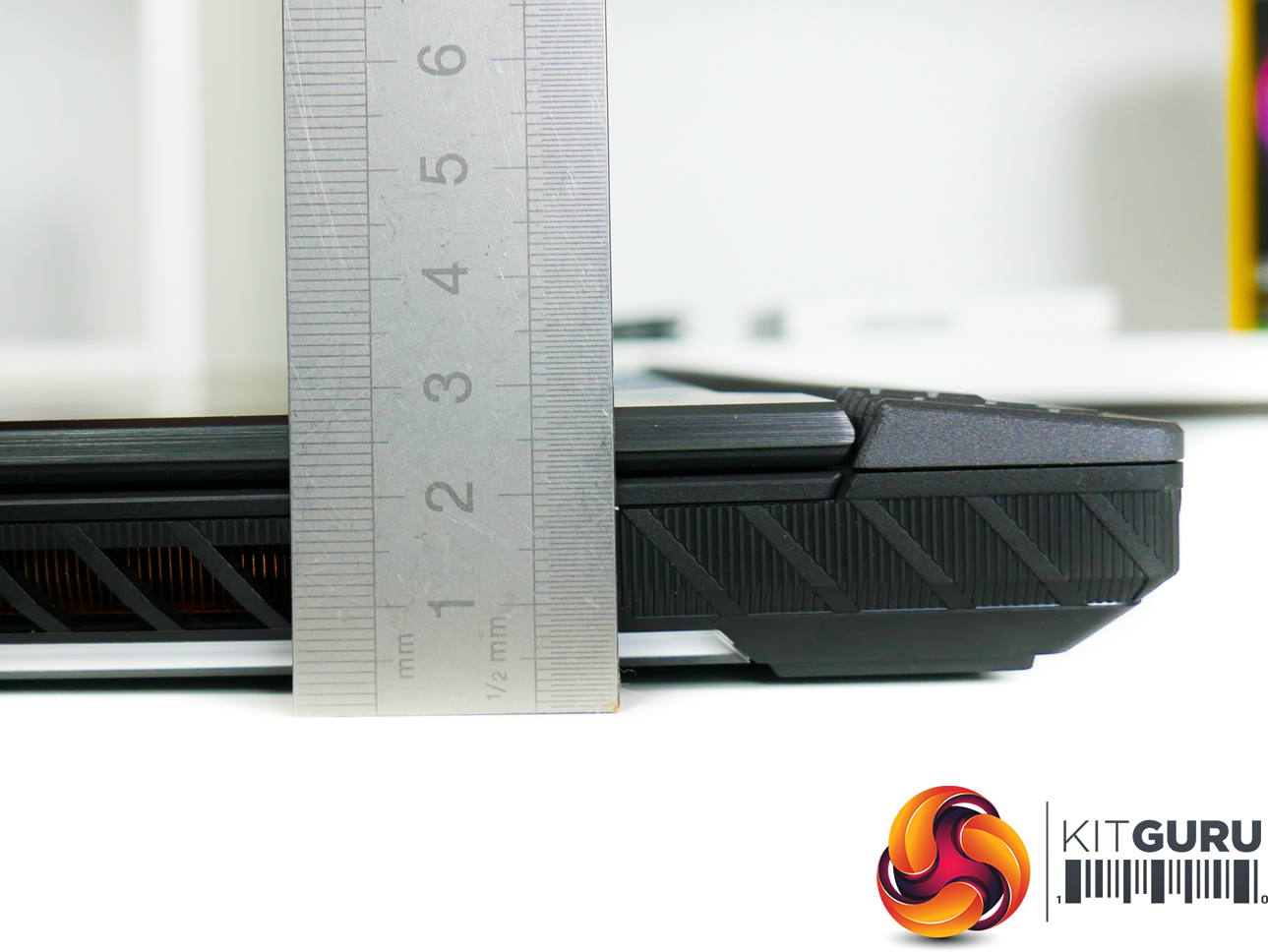The light-up ROG logo is a nice touch which adds to the premium feel. There is a decent amount of venting on the underside plastic shroud, though most of the air intake and exhaust is handled by back and side vents.