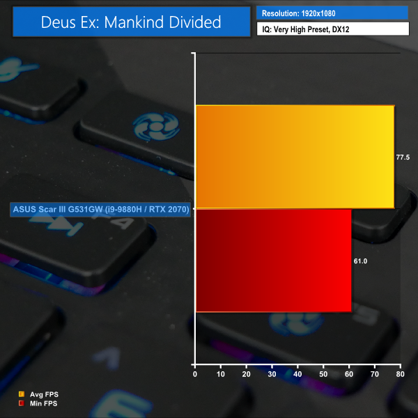 Deus Ex: Mankind Divided is an action role-playing stealth video game released in August 2016. A built-in benchmark utility is included and we test using the Very High quality preset and the DirectX 12 API at a 1080p resolution.