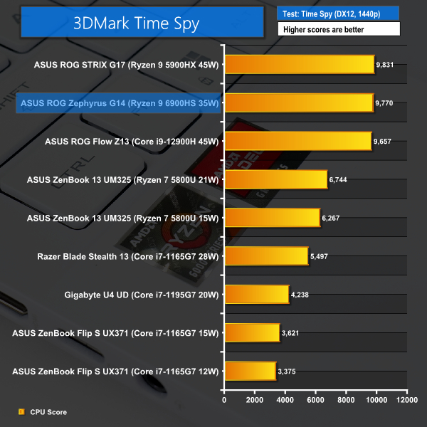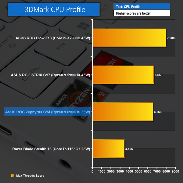 But the CPU Profile test is strongly favourable towards the Core i9-12900H thanks to its greater number of threads via 6 P-cores and 8 E-cores. PCMark 10 also favours Intel’s Core i9 competitor thanks to a greater number of cores and lofty Turbo frequencies.