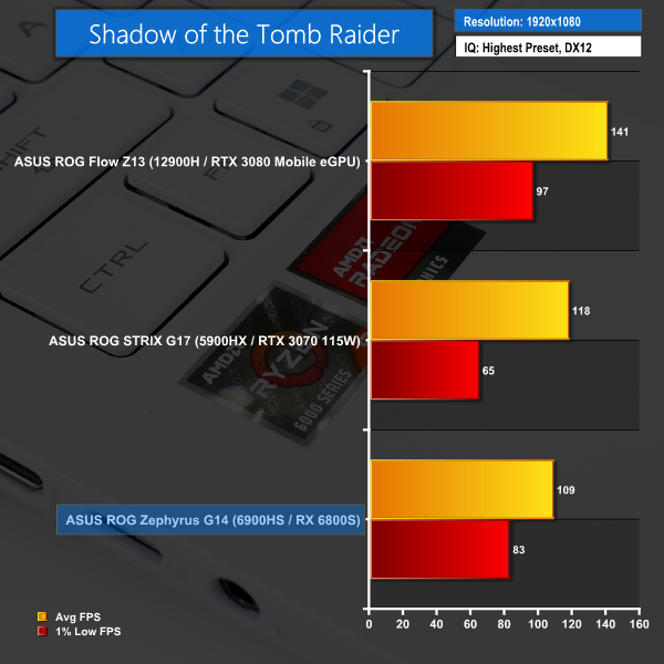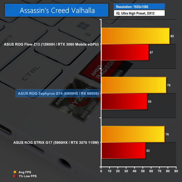 It will not come as any surprise to see the Core i9-12900H-equipped ASUS Flow Z13 winning in most of these gaming scenarios. That is primarily thanks to the high-powered RTX 3080 Mobile eGPU solution used by that laptop for its gaming credentials. There are, however, instances where the stronger AMD Ryzen 9 6900HS CPU gets the G14 to outperform that Flow Z13.