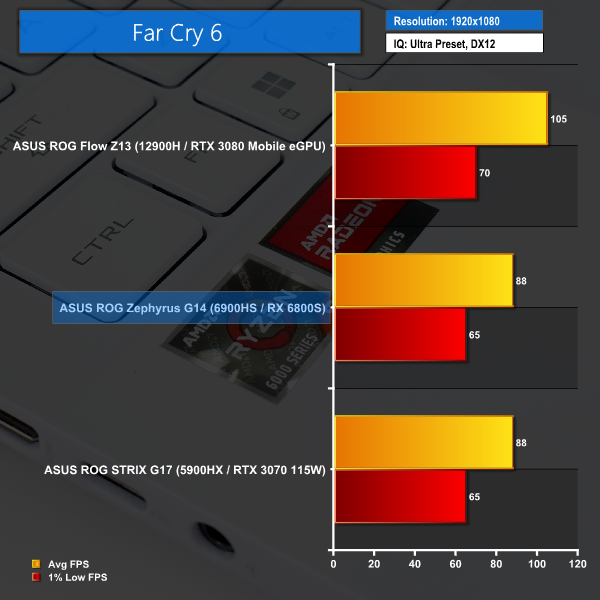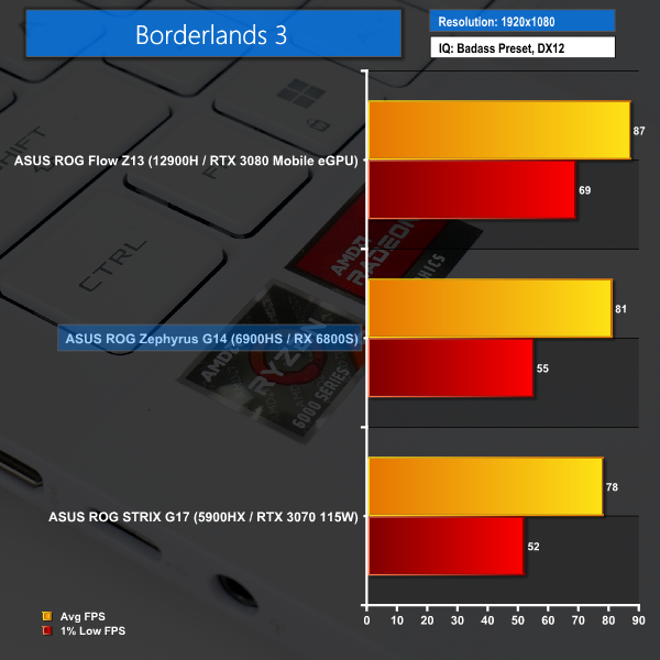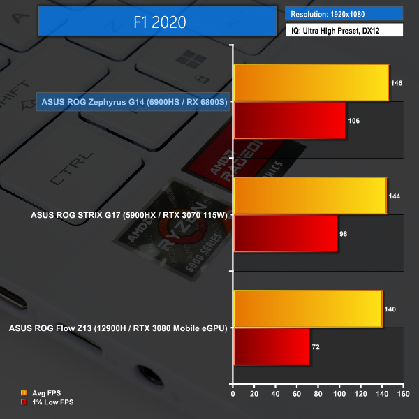 Plus, if you want to crank up the ante and run the Zephyrus G14 at its native QHD+ resolution, there is the horsepower available to do that, as we show in the video review.