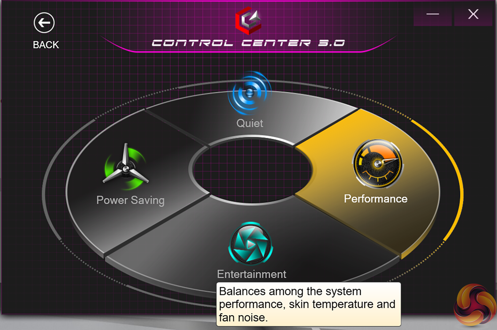 Under Gigabyte’s control software, we set the laptop to run in its ‘Performance’ mode so that we can see its true horsepower available. There are other power modes available that are probably more sensible for daily usage, though.