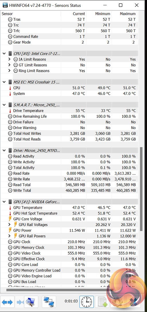 The CPU was fed with more power now that the cooling allocation had increased. Now, we saw the chip getting around 35-55W but mainly 45-55W allocated which resulted in improved clock speeds that were around the 3GHz mark. Temperatures were still lofty at low-to-mid-90s, but there wasn’t major thermal throttling.