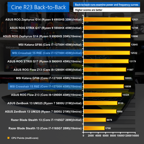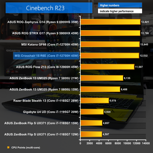 If you have already seen our MSI Katana GF66 gaming laptop review, then the analysis with this Crosshair 15 will be similar – they both use the same Intel Core i7-12700H with very similar power configurations.