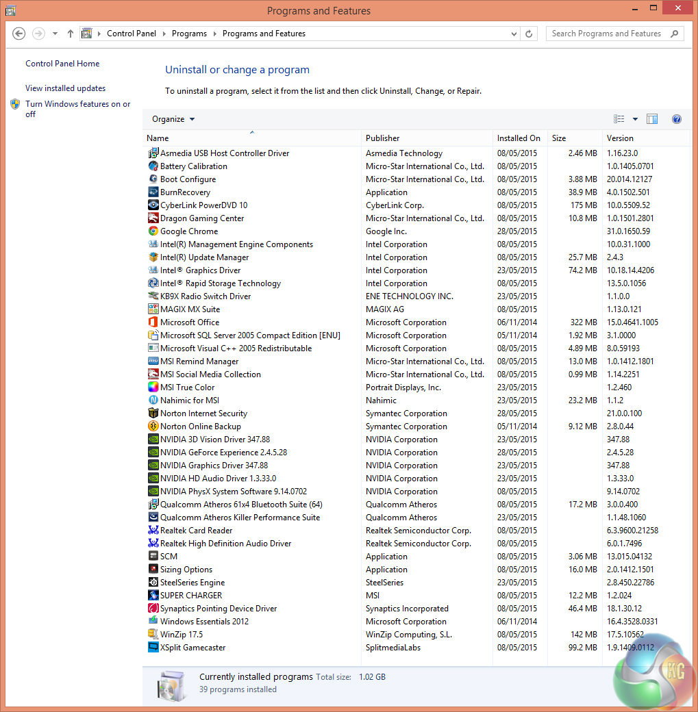 MSI ships the GT72 2QE with a substantial amount of pre-installed software. Some of the installs, such as XSplit, are useful. However, other installations, such as Norton (not even with a decent license term), will be considered bloatware that cannot be removed quickly enough.