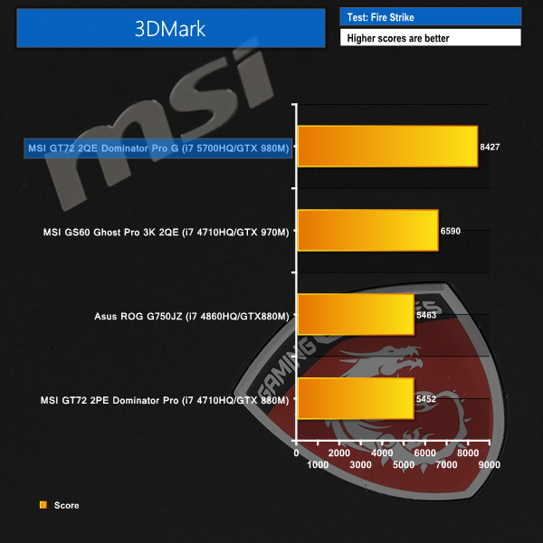 3DMark's affinity for graphics horsepower speaks volumes about the 8GB GTX 980M graphics card's might.