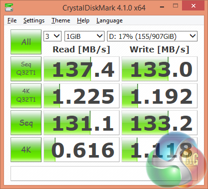 HGST's 1TB 7200RPM HDD is able to push more than 130MBps sequential reads and writes, which is good performance for a 2.5″ drive.