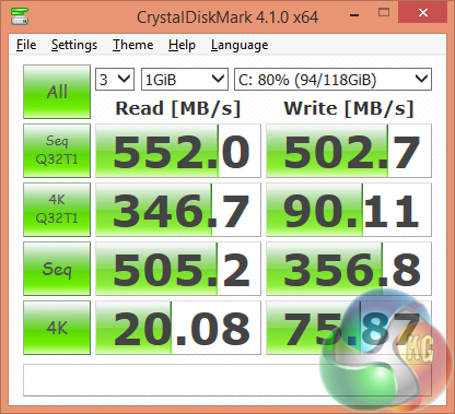 We tested USB 3.0 performance using the Kingston HyperX 3K SSD connected to a SATA 6Gb/s to USB 3.0 adapter powered by an ASMedia ASM1053 controller.