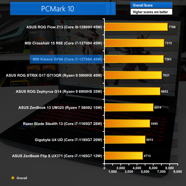 3DMark Time Spy took a very strong liking to our MSI Katana GF66 test sample, likely due to preferential power allocations during the test.
