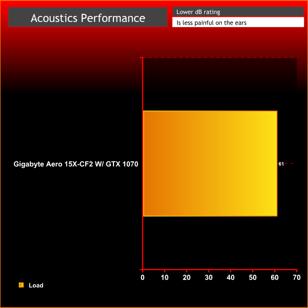 Stress both of those components simultaneously, though, and the Aero makes more noise. Its fans ramped up through six speed levels, which meant six different noise levels too – and the cooling gear modulated between several of those levels with regularity.