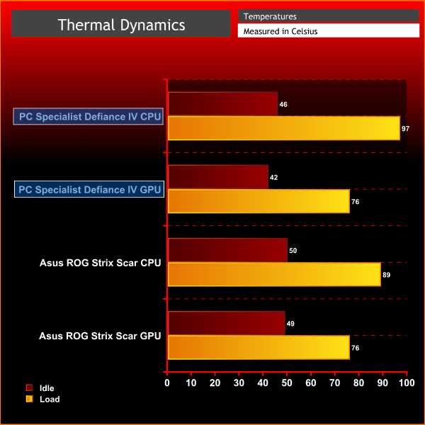 During gaming, the PC Specialist was better – it’s quieter than the Asus, and its components remained cool.