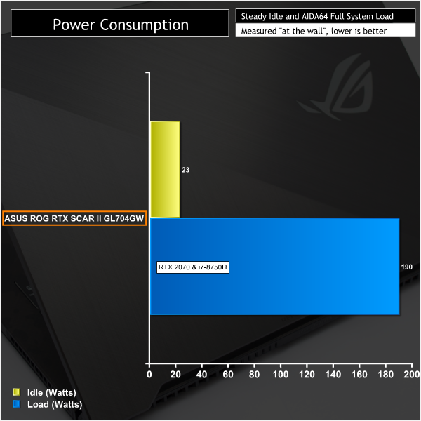 Regardless, 190-watts under heavy system load is a low power consumption figure compared to what a gaming desktop of an equivalent price-point might utilise.