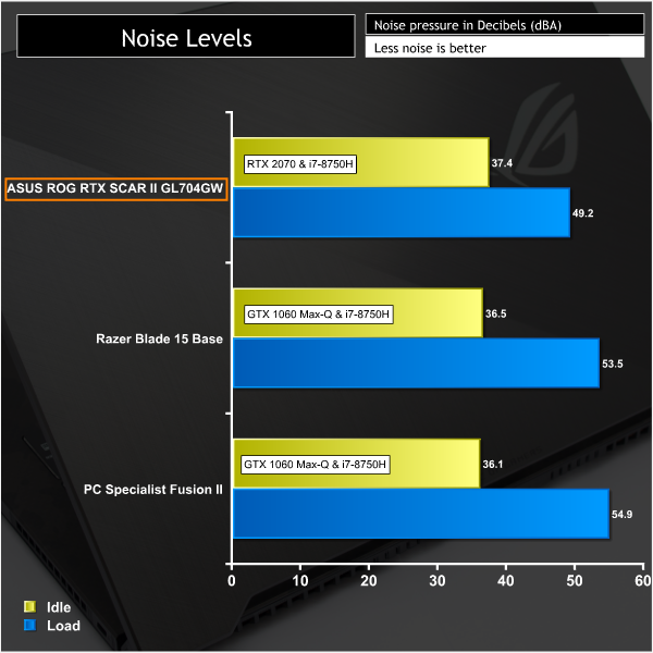 In fact, our main gripe was at idle or low loads where there is strange noise that sounds like a weird combination of a muffled fan noise, speaker interference and coil whine. it is quite noticeable and will be irritating for users who spend a lot of time on their laptop without gaming.