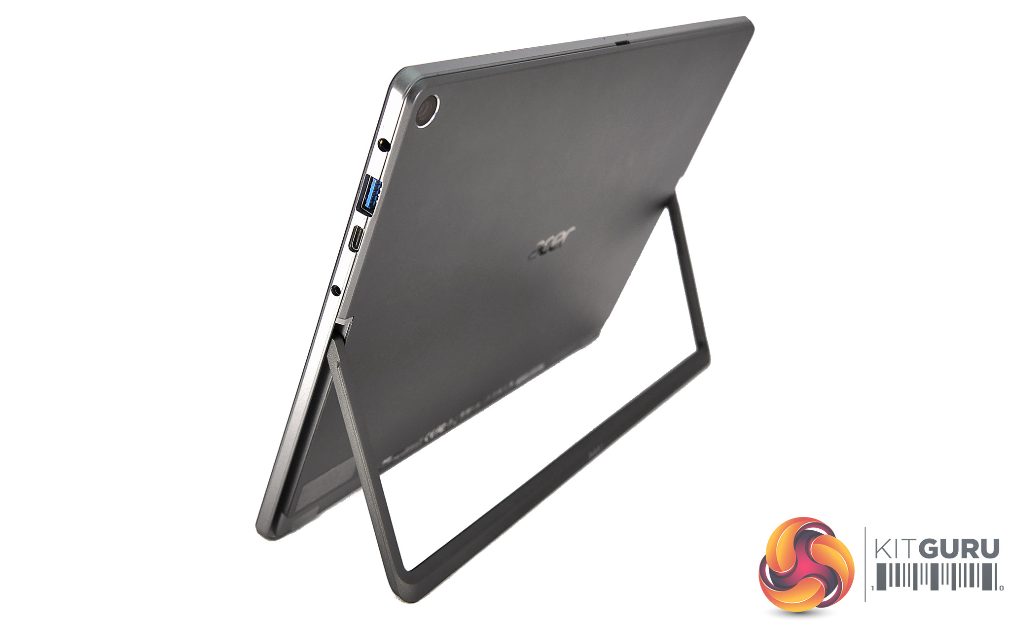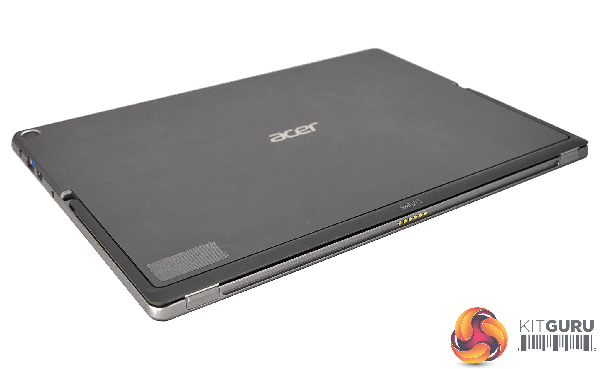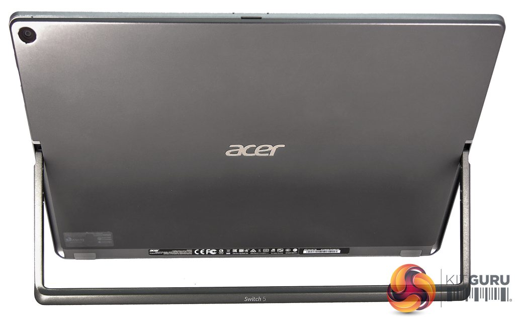 The sides and the rear are mostly covered with what appears to be a relatively soft aluminium, but the impressively solid kickstand suggests Acer has used more durable materials where it counts. Overall the Switch 5 feels very solid too, with no flex or creak whatsoever. The gunmetal-coloured rear is unbroken save by that kickstand, the silver Acer logo and the recessed rear webcam, with most of the unsightly labels and model information nicely hidden under the stand itself.