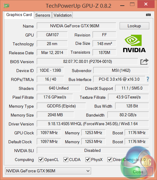 This is pretty much an identical configuration to the Razer Blade Pro 2015 we tested a few weeks ago (although the MSI only has 8GB of memory, not 16GB). The Intel Core i7 4720HQ is a great processor and the GTX960M is capable of delivering some good performance results at 1080p.