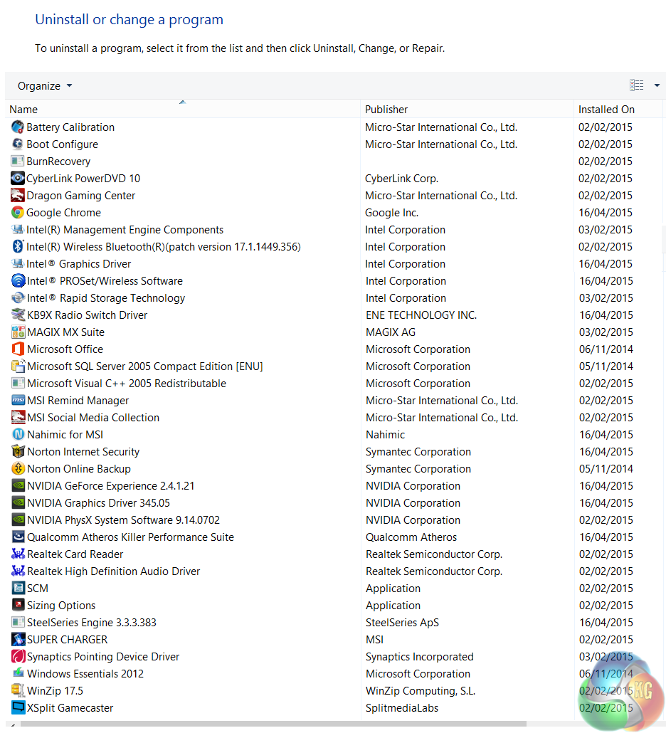 The MSI GE62 2QD ‘out of the box' install isn't too bad, although it could be better. Norton Internet Security (trial version) and Online Backup should never be installed on any system automatically, and I admit I removed it before testing the laptop due to invasive and annoying popups.