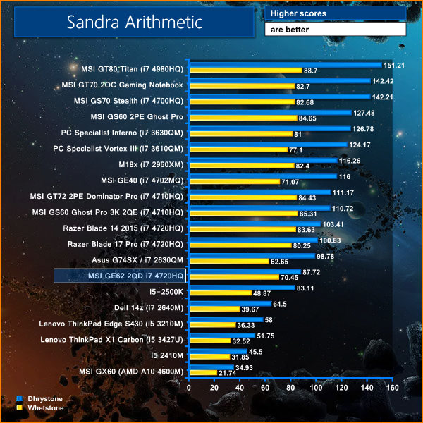 The single channel memory in the MSI GE62 2QD negatively impacts performance in these synthetic benchmarks, although the Core i7 processor is certainly not lacking in grunt.