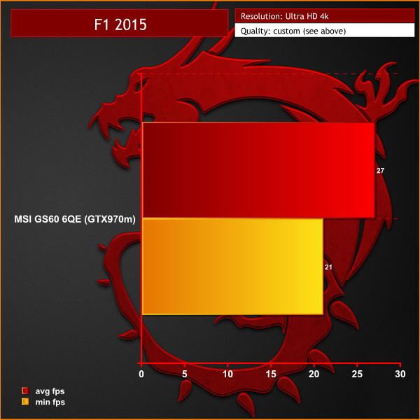 I opted to run a test at Ultra HD 4K at the same ‘Ultra High' preset – but decided to disable SMAA and TAA to give the GTX970m some chance.