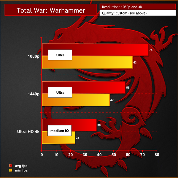 We test in the Direct X 12 (BETA) mode with the game set to the ULTRA profile at 1080p and 1440p and with the MEDIUM profile at Ultra HD 4k.