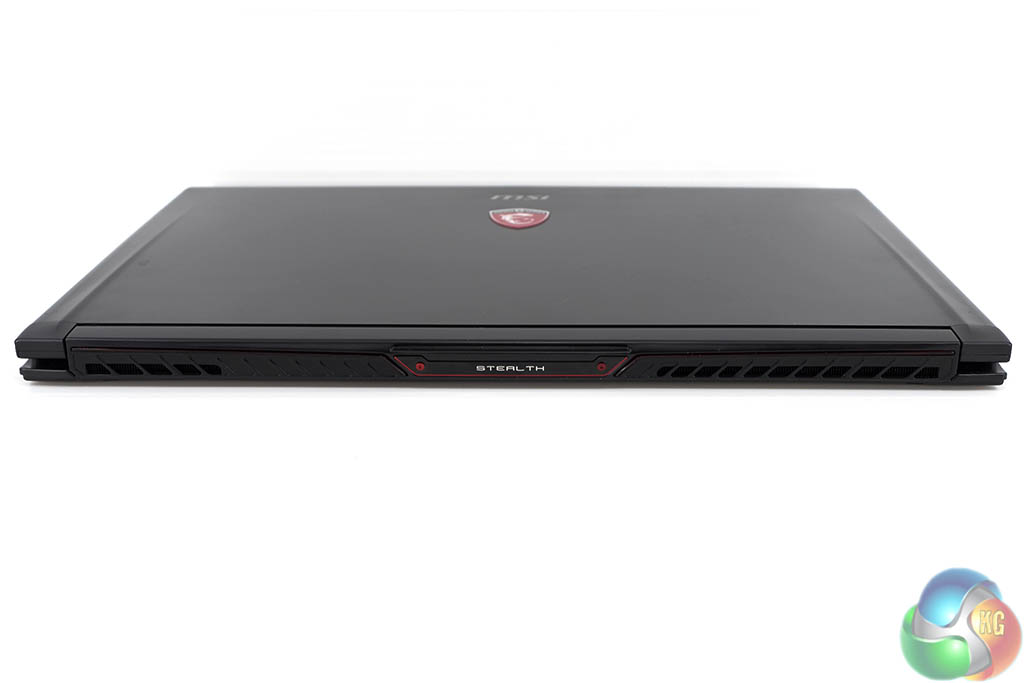 Along the back of the laptop are two long cooling vents and the words ‘STEALTH'.
