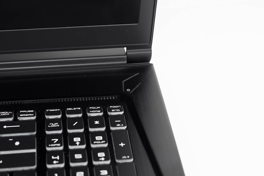 The power button is unusual, in that it is part of the chassis design, rather than a dedicated button. It actually has a light behind it which signifies the graphics mode – if it's Red, the integrated Intel graphics is in operation. Orange means the Nvidia GTX1060 is powered up.