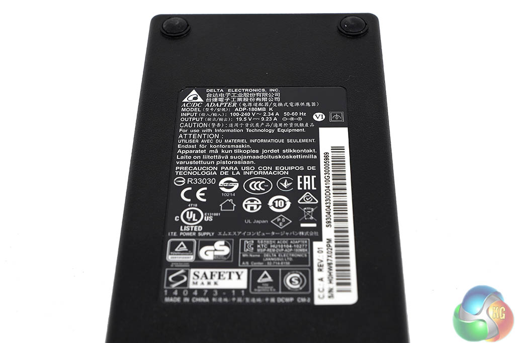 Unlike the MSI Titan laptop – the MSI GS73 6RF ‘Stealth Pro' power brick is very modest. The power delivery is rated around 180 watts maximum.