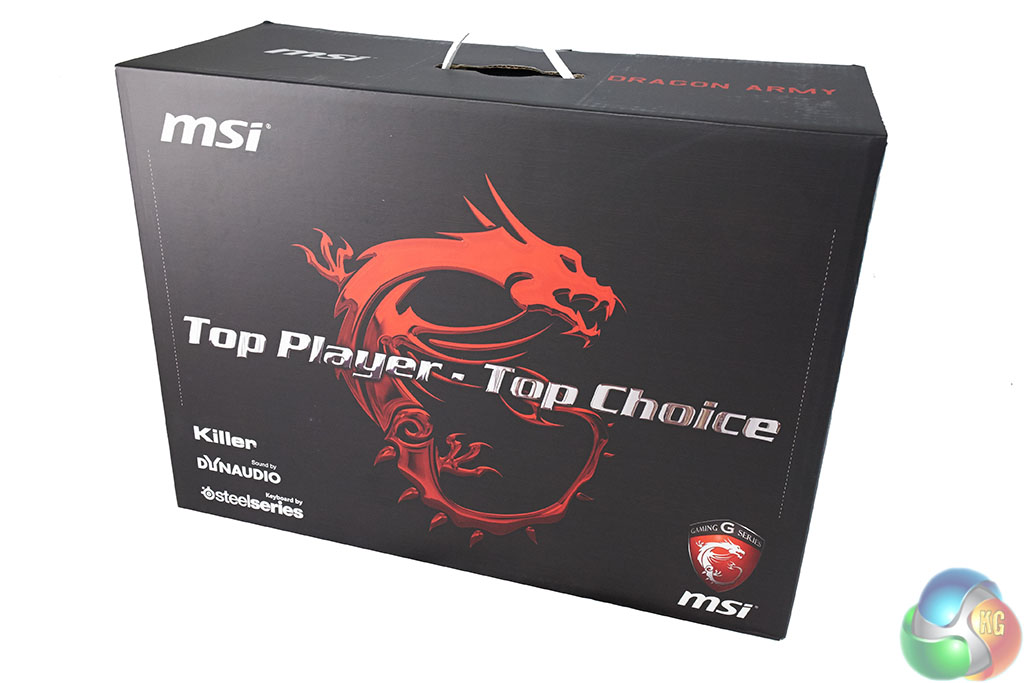 The laptop box is colourful, featuring MSI's red dragon mascot on the front.