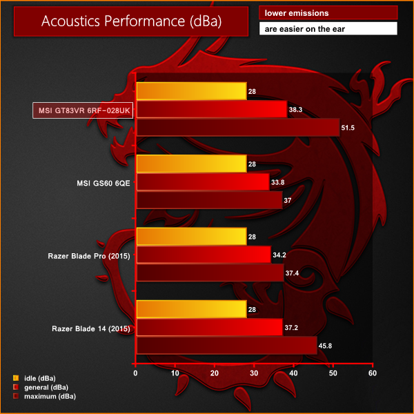 The MSI GT83VR 6RF is not a quiet laptop by any stretch of the imagination. Visualise strapping two reference GTX1080 cards and a Core i7 processor into a reasonably confined space and placing it a few feet from your head.