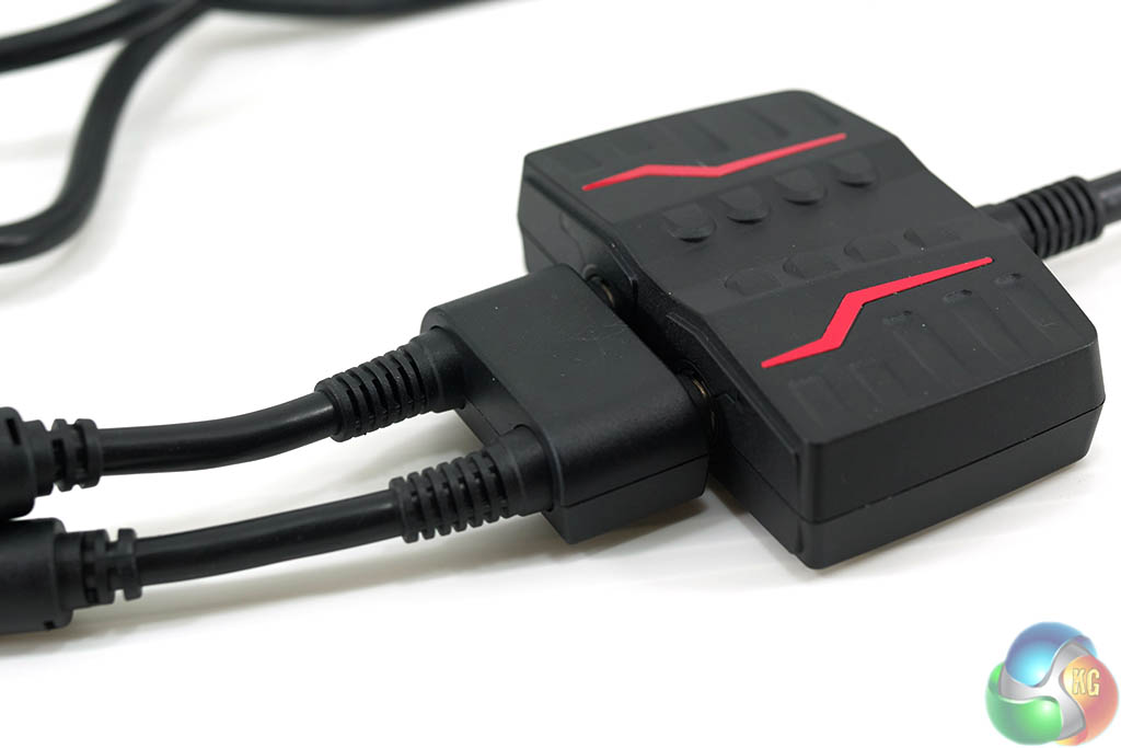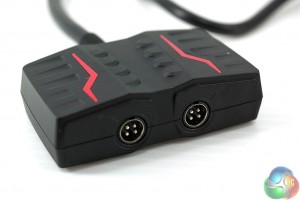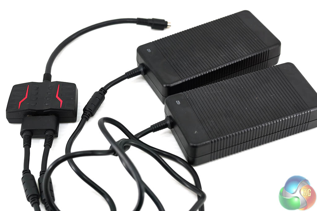 Each of the power bricks is connected to a proprietary two pin header cable (pic above left) which plugs into a little breakout box (pic above right).