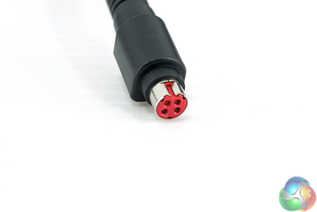 The power connector fully assembled (above left). The cable above right plugs into the back of the GT83VR 6RF laptop.
