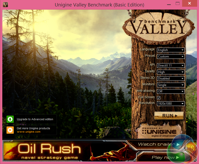 Valley Benchmark is a new GPU stress-testing tool from the developers of the very popular and highly acclaimed Heaven Benchmark.The forest-covered valley surrounded by vast mountains amazes with its scale from a bird’s-eye view and is extremely detailed down to every leaf and flower petal. This non-synthetic benchmark powered by the state-of-the art UNIGINE Engine showcases a comprehensive set of cutting-edge graphics technologies with a dynamic environment and fully interactive modes available to the end user.