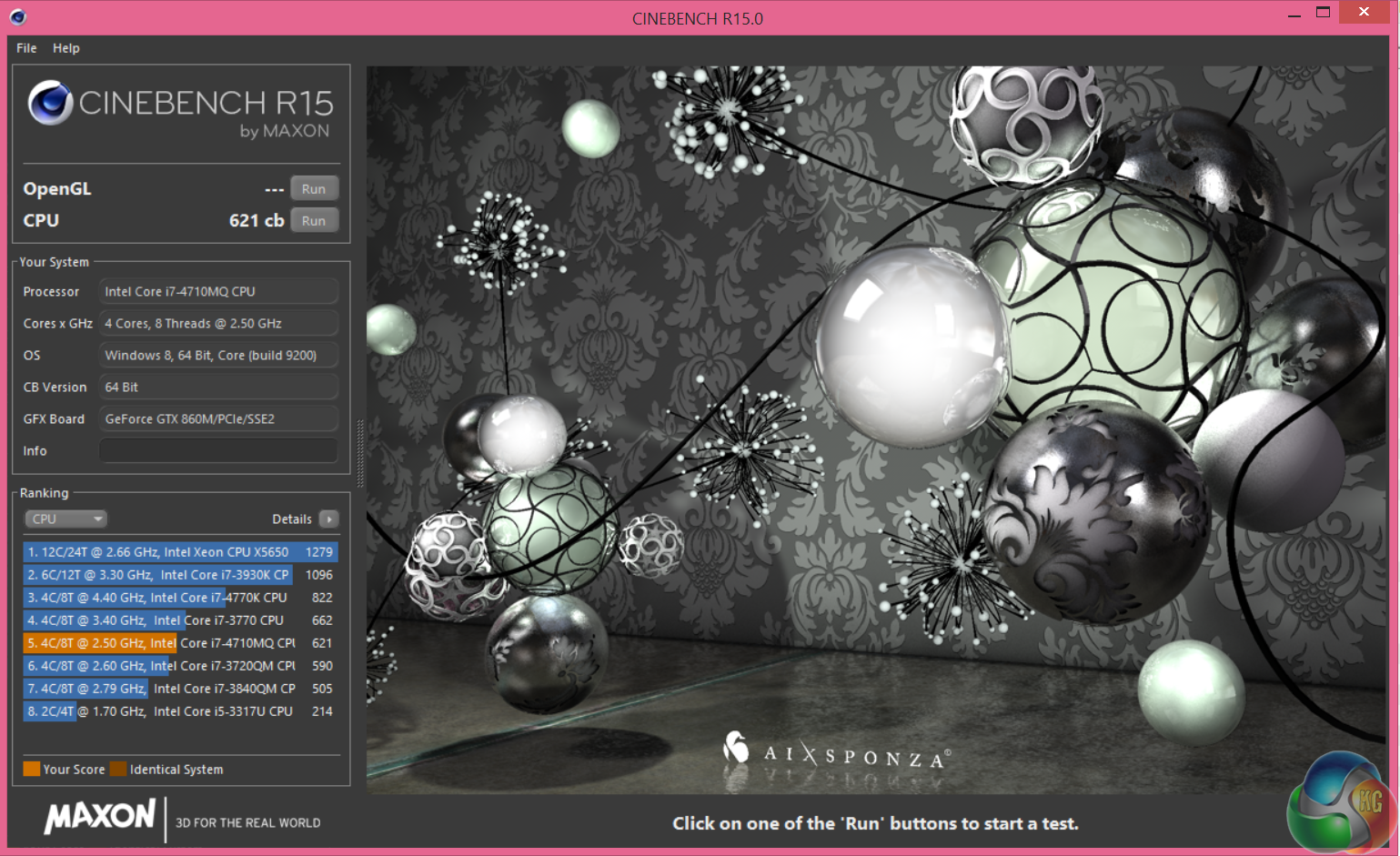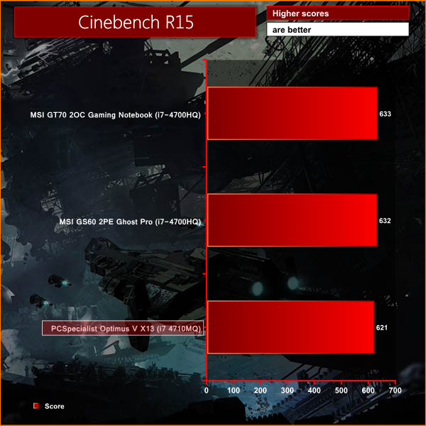 Rendering performance is excellent in the latest Maxon benchmark test, very closely matched to the recent MSI laptops we have tested – all of which are using powerful Core i7 mobile processors.