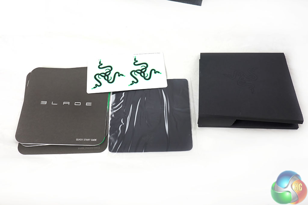 Razer supply some literature on the product, a cleaning cloth and some stickers featuring the Razer logo.