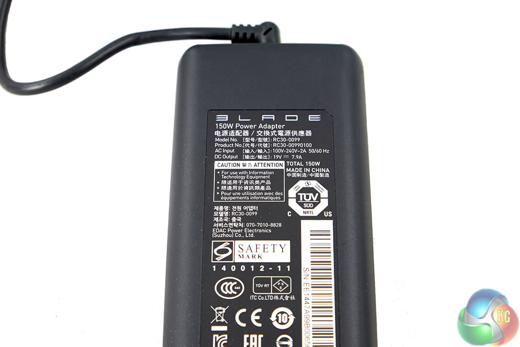 There is also a power supply in the box. Thankfully it is not a huge brick, but a rather svelte unit unlikely to cause transportation discomfort in a backpack. It is made in China, and rated 100-240 v at 150 watts maximum. As such it will work in any country, with a plug adapter, including the UK. These little adapters can be picked up on Amazon for only a few pounds (or less).