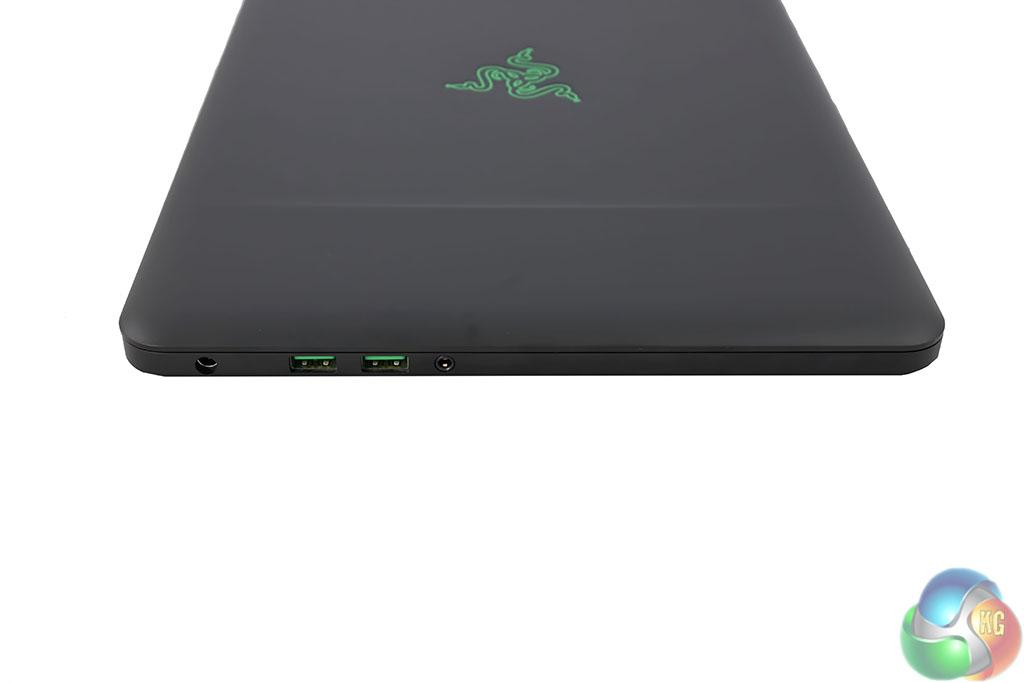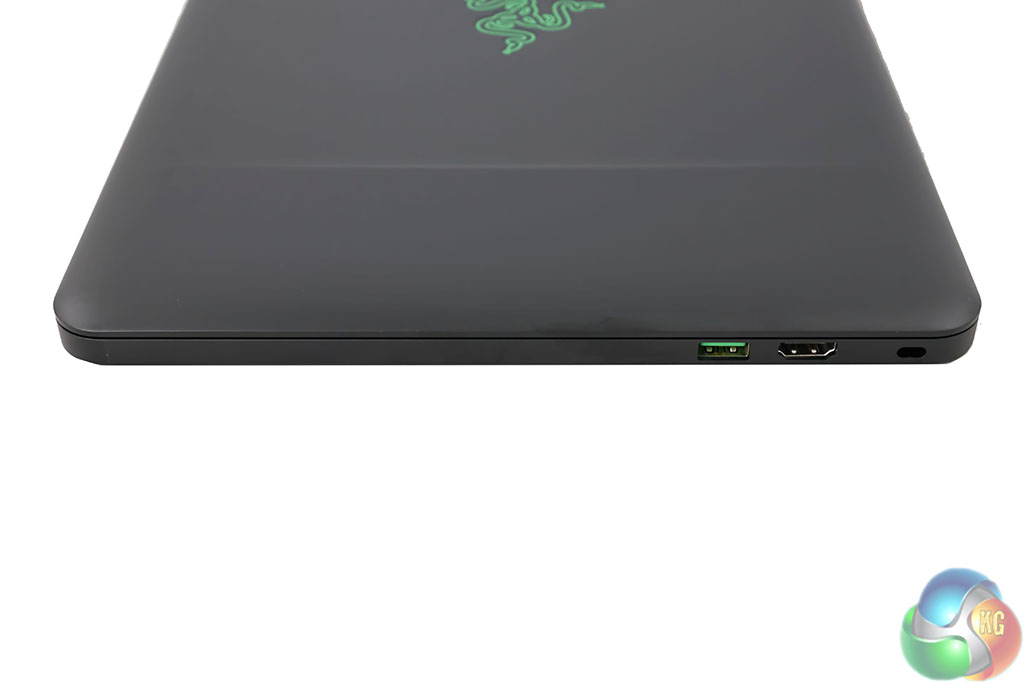 I love the green USB 3.0 ports. On the left side, from front, a microphone/headphone jack, two USB 3.0 ports and the power connector port. On the right side, an HDMI (1.4b) port, Kensington lock and another green coloured USB 3.0 port. Sadly Razer didn't update the 2015 version with a HDMI 2.0 port. This means if you want to output at 4K you are limited to 30hz. I would have preferred a Displayport connector, but HDMI is definitely more widespread, so perhaps their logic makes sense.