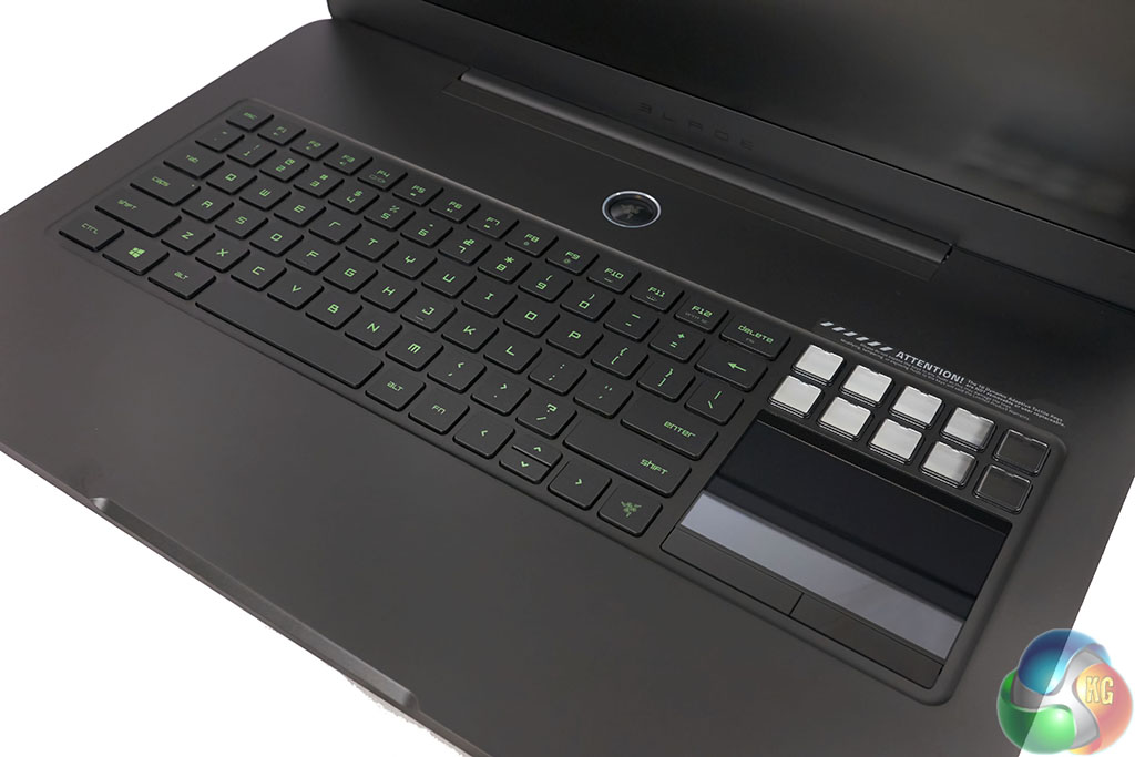 Razer have ditched the traditional trackpad hardware and instead incorporated a colour touch screen with ten physical buttons above it and two underneath. I go into this implementation in more detail on the next page as there is a lot of on offer. It looks deeply unimpressive when the Blade Pro is turned off, but trust me, it is worth a deeper analysis on its own page.