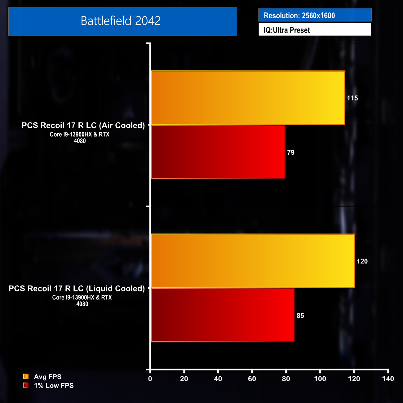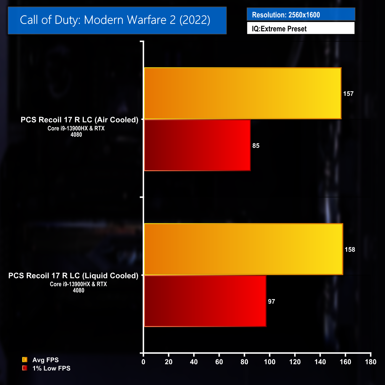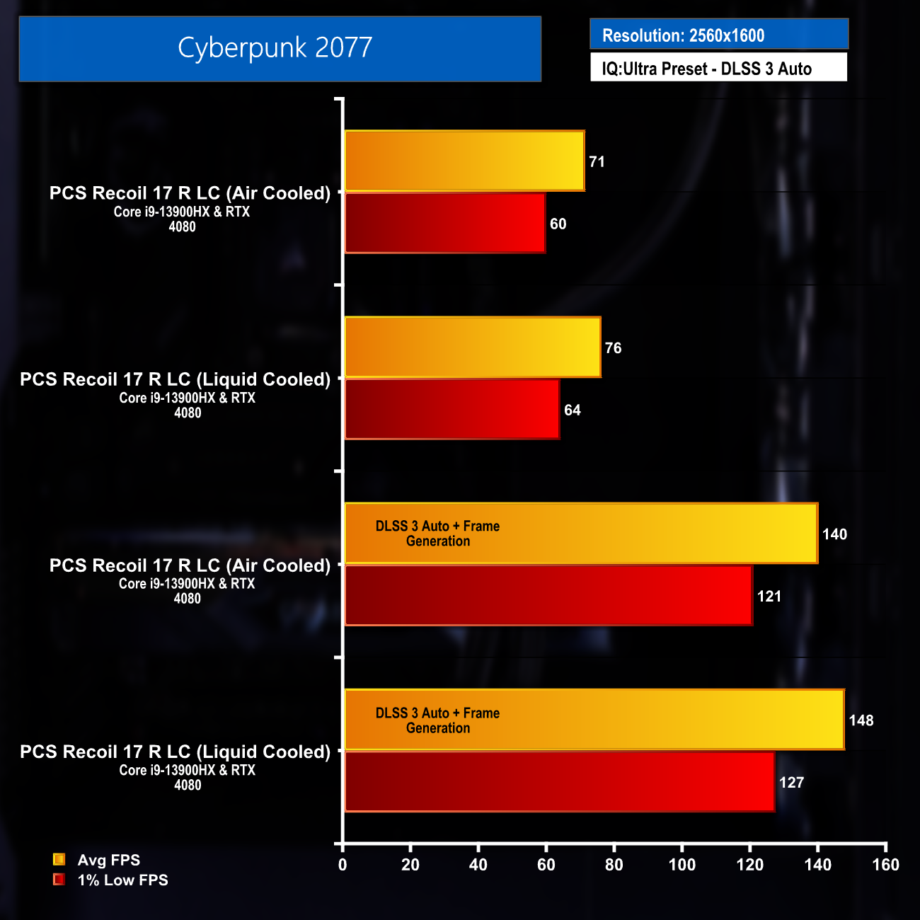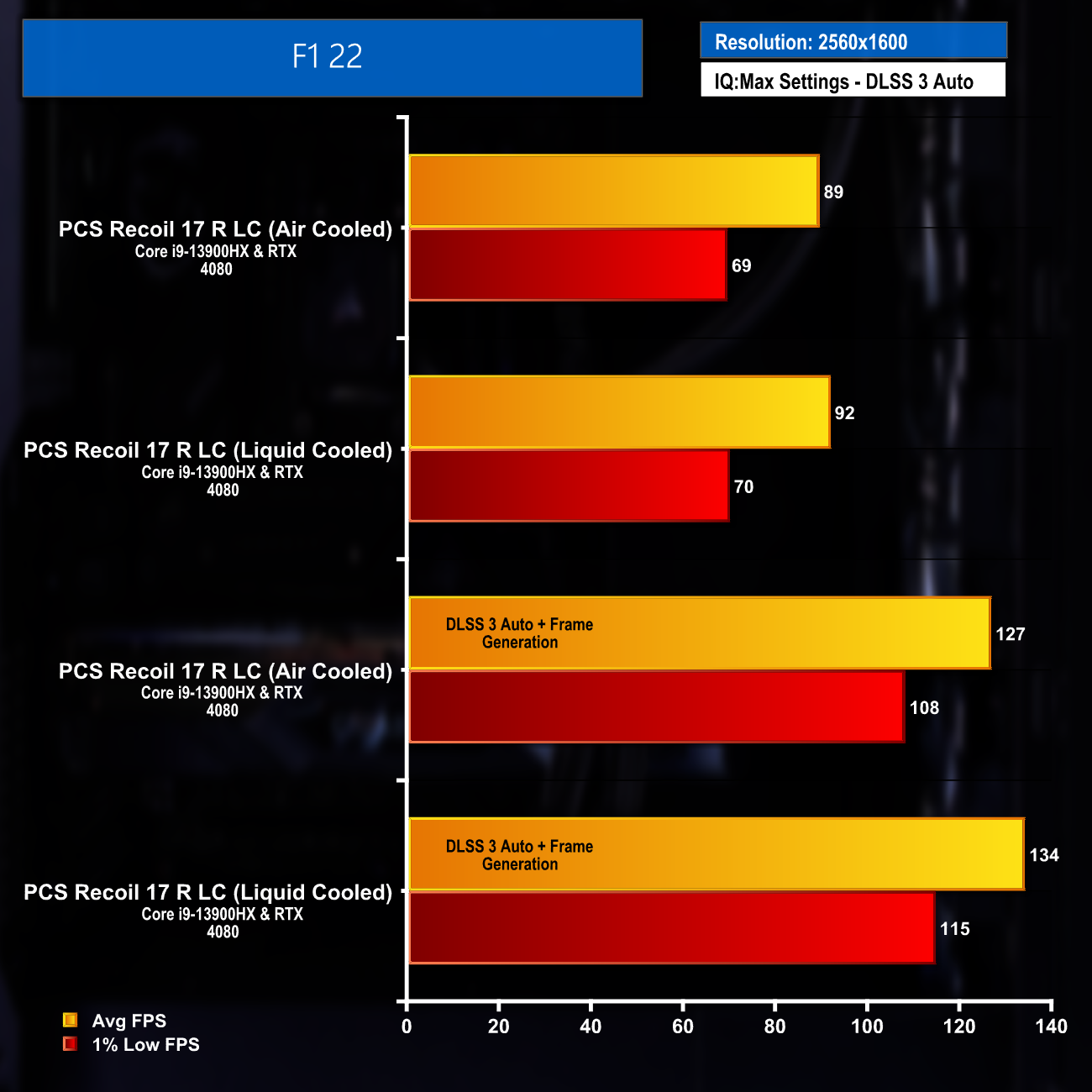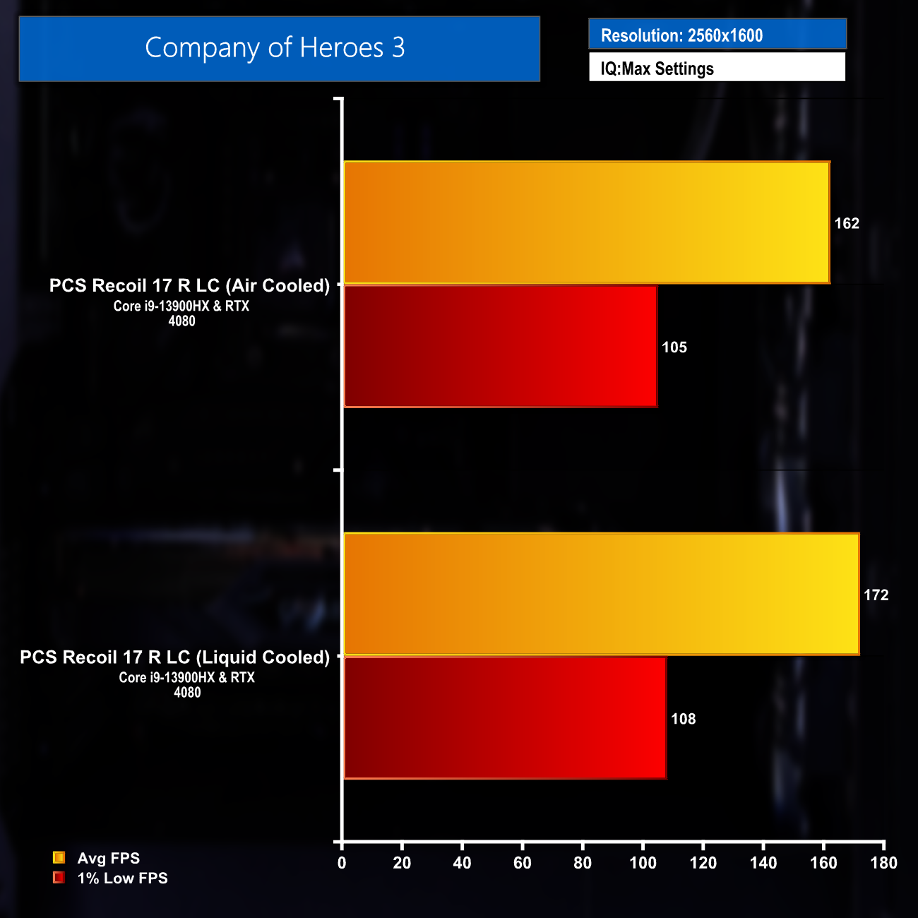 The 10 game average and DLSS supported titles average frame rates really highlight the great gaming performance at maximum settings from the Recoil 17 R LC. Settings could be turned down by competitive gamers to help push the FPS figures even higher and help take full advantage of the 240Hz display.