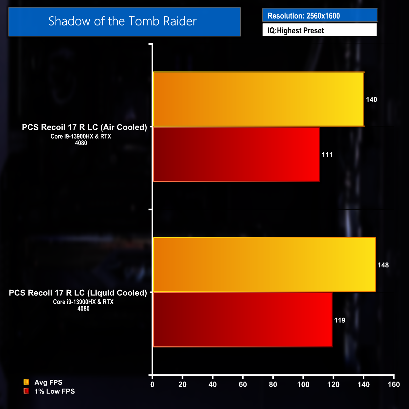 The addition of the liquid cooler did increase frame rates slightly with some titles seeing more gains than others.