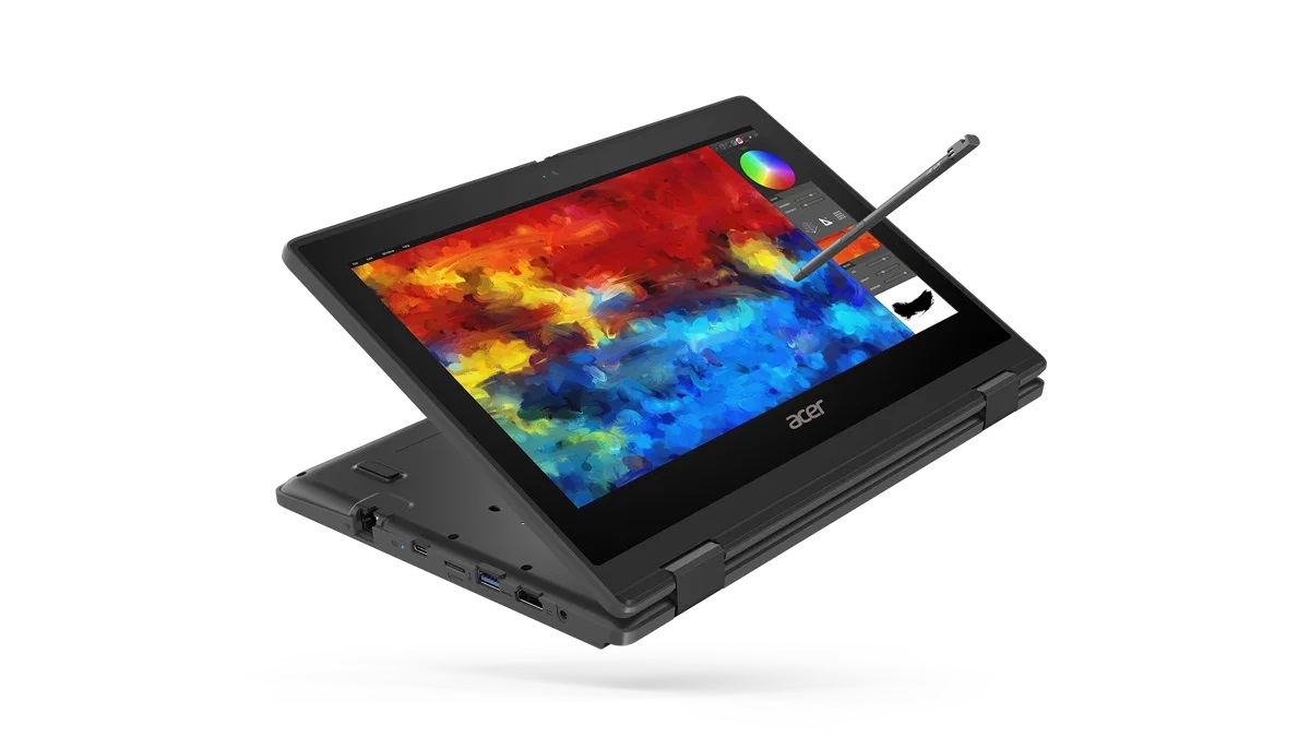 On the front of the Acer TravelMate B3 series is an optional battery charge indicator light, the devices include difficult to remove anchored keys and an easy fix keyboard that enables school technicians to easily repair broken keyboards on the device. Both the B3 and Spin B3 feature various connectivity options including Ethernet, two USB 3.2 Gen 1 ports, HDMI and on select models there is a USB Type-C ports for charging, 5GB/s data transfer and external display connection.