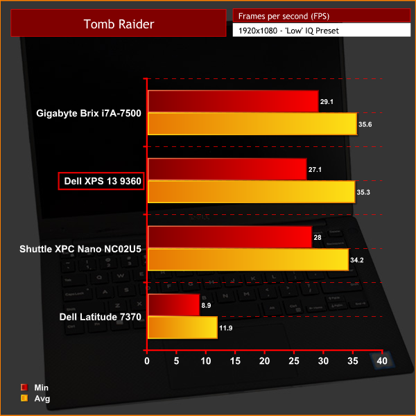 Lastly, to see how the XPS 13 got on with a less-demanding game, I ran Tomb Raider (2013), at 1080p using the ‘low’ image-quality preset.