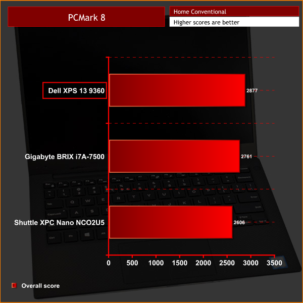 The fastest score I have seen since beginning to use the PCMark 8 benchmark, the XPS 13 is over 100 points ahead of the BRIX.
